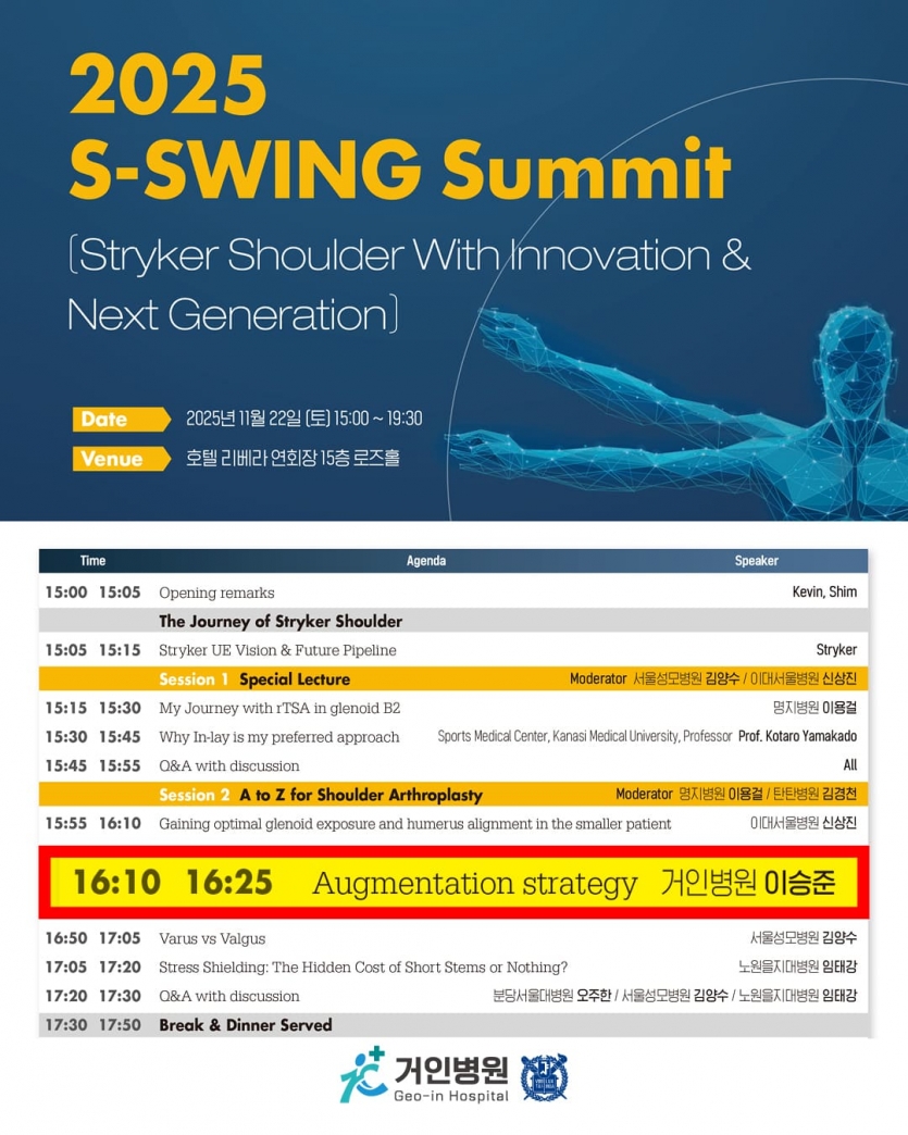 거인병원은 앞으로도 활발한 학술 활동을 통해 환자분들에게 최신 지견의 의료 서비스를 제공하기 위해 최선을 다하겠습니다.