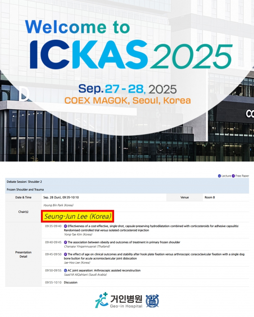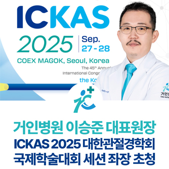 이승준 대표원장님께서 오는 9월 28일 개최되는 ICKAS 2025 대한관절경학회 국제학술대회에서 세션 좌장으로 참석하십니다.