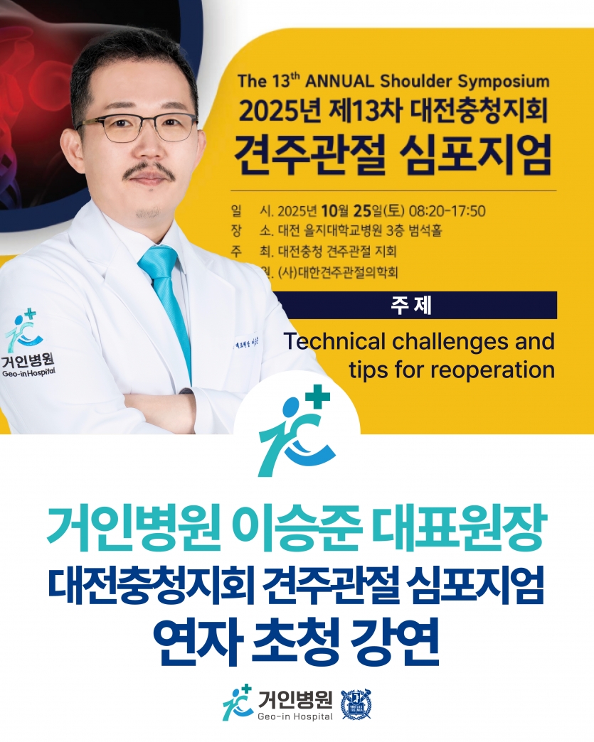 거인병원은 앞으로도 활발한 학술 활동을 통해 환자분들에게 최신 지견의 의료 서비스를 제공하기 위해 최선을 다하겠습니다.