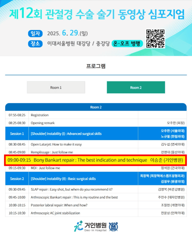 이승준 대표원장님께서 대한관절경학회 수술 술기 동영상 심포지엄 연자로 초청되어 강의를 진행하고 오셨습니다.