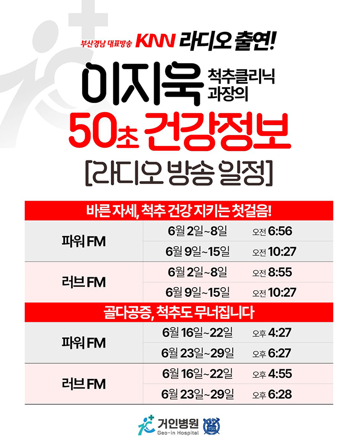 부산 KNN 라디오 50초 건강정보 이지욱 척추클리닉 과장님 출연!