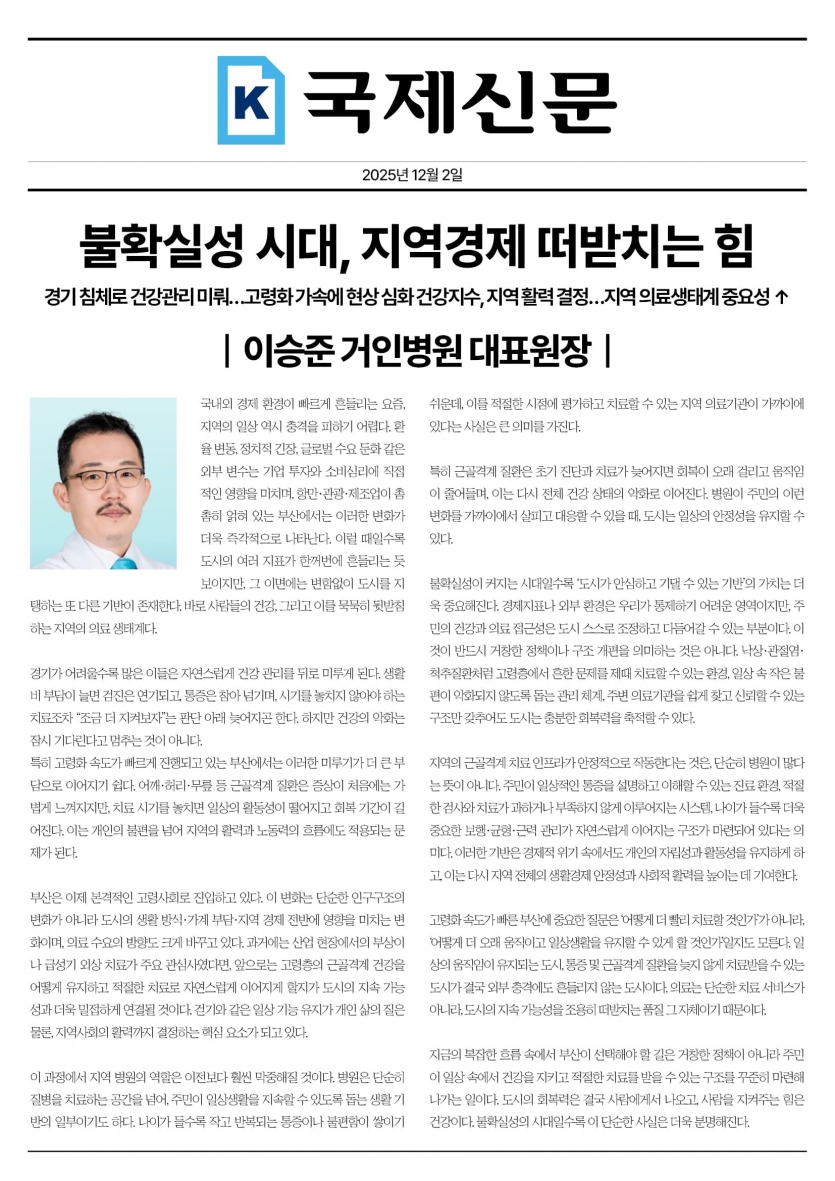 [국제신문 CEO 칼럼]불확실성 시대, 지역경제 떠받치는 힘 - 이승준 대표원장님