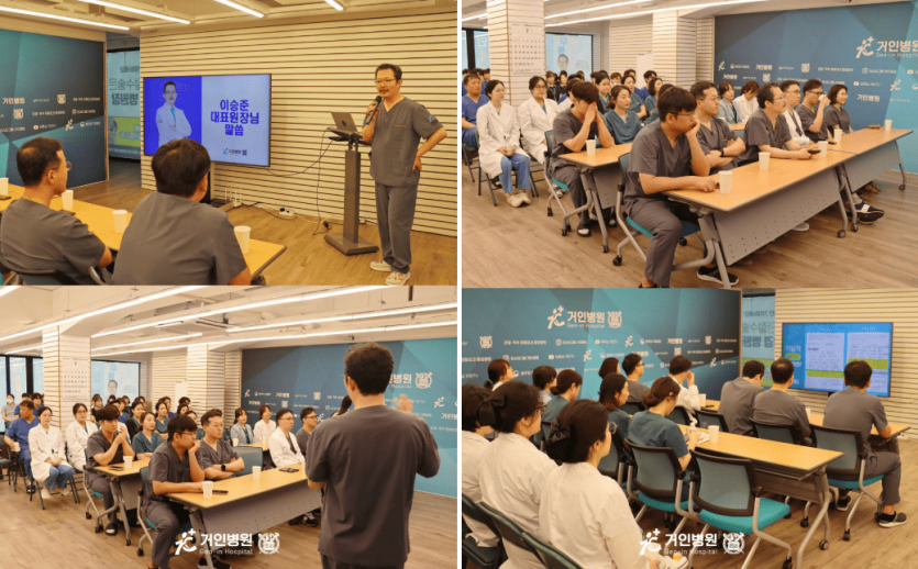 거인병원은 더 나은 진료 환경을 위해 매달 월례회를 진행하고 있습니다.