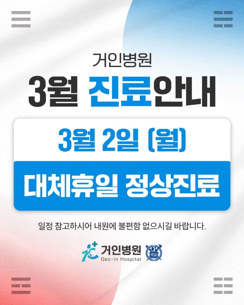 3월 2일(월) 대체공휴일 정상진료