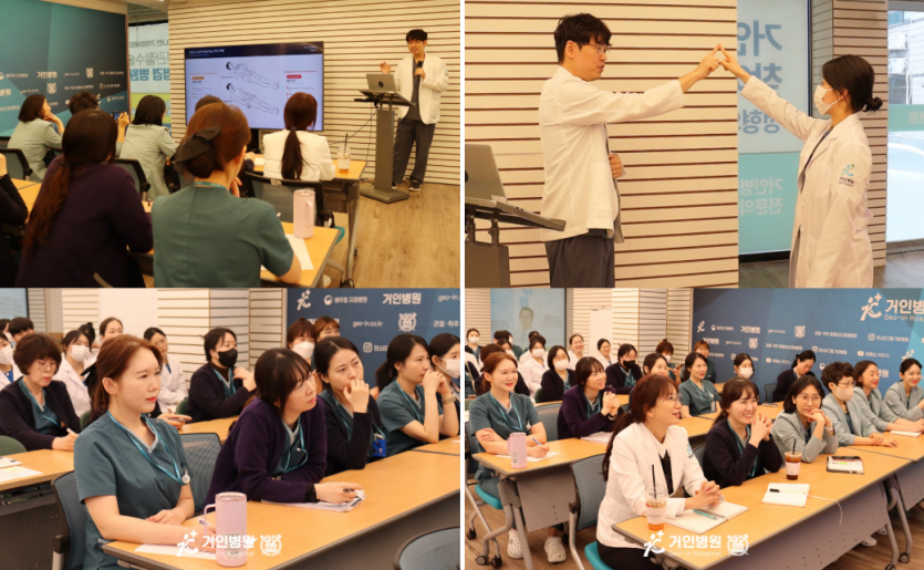 거인병원은 분기별 직무교육을 실시하고 있습니다. 이날은 척추센터 이지욱 과장님께서 교육을 진행하셨습니다.